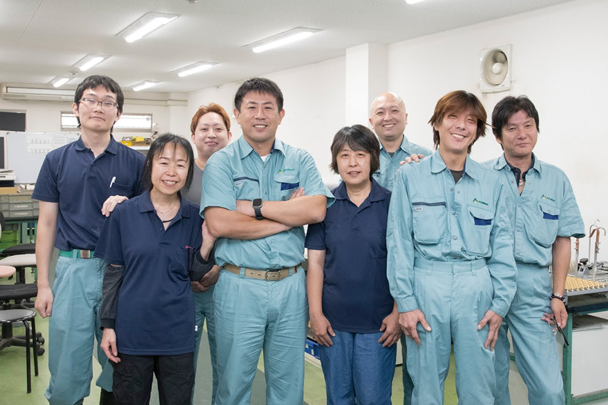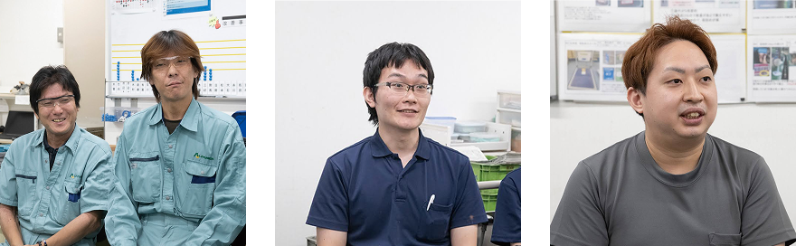 - 僕が入社した9年前、社長はこの部署は一人一席で、それぞれが1から10まで対応している個人商店みたいなものだと言っていました。今は分業化も進み、女性社員にめっき前の仕事とか梱包、出荷を任せてよりめっきに集中できるようにしています。このチームが100周年記念座談会のトップバッターです。