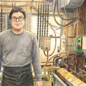 入社間もないニューフェイス。ダイヤフラムへの無電解ニッケルメッキを担当している。入社直後から、アルファメック始まって以来の増産体制が敷かれたラインに飛び込んだ彼は、苦戦しながらも徐々に仕事を覚え始めたところだ。趣味は映画鑑賞で、古今東西あらゆる映画を観ていると話す。その中でも一番気に入っている映画は理由は聞かなかったが、「タイタニック」だそうだ。※平成29年4月現在