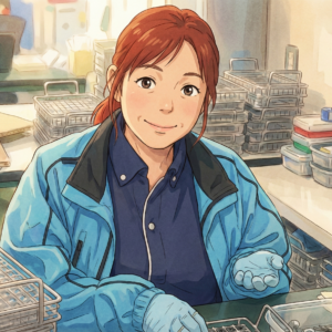 得意な作業はタコ掛け(ラッキング)です。 近年は、自動車部品の量産ラインに入り、自動機で流れてくる自動車部品を黙々と処理する作業を担当しています。 この現場では、教えられたことをすぐに覚え、検査も正確で、作業の流れを止めない安定した動きが評価されるようになってきました。 特に、集中力を切らさず一定の品質を保てる点は、周囲の社員からも高く評価されています。