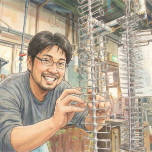 糸川は、めっき作業におけるタコ掛け(ラッキング)・タコ外し(アンラッキング)・目視検査など複数の業務を担当している社員です。 作業に向き合う姿勢は非常に慎重で、どんなに小さな傷や打痕であっても見逃さないよう、 常に注意を払って作業を行っています。