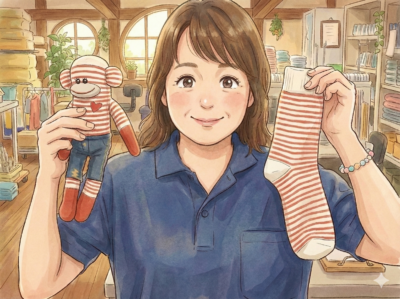 靴下から作る “ソックモンキー” の作家としてSNSでも作品を発信するほどのクラフト好き。
